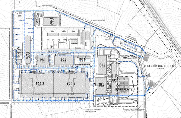Magdeburg plan with fab modules 29.1 and 29.2 in western corner of site. Source: Download of Intel plans.