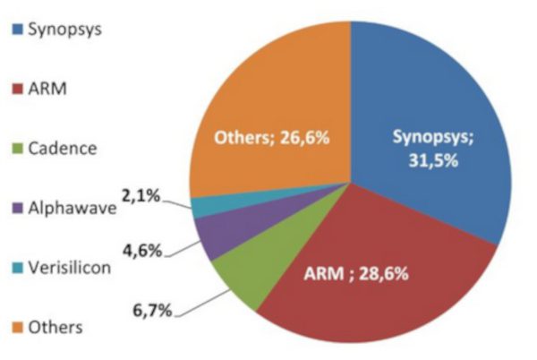 ARM continued as the top-ranked IP provider as it compensated for declining royalty revenues dues to smartphone weakness by remarkable growth in its license revenues, up 28.6 percent year-over-year. This is attributable to licensing into high-performance computing and AI applications and automotive.