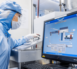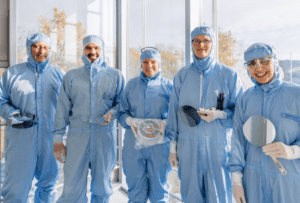 Finally, the wafers are extensively tested using optical microscopy, Raman spectroscopy, as well as electrical measurements on test devices.