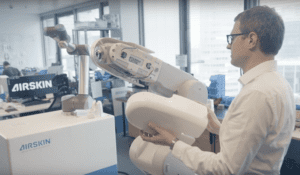 The skin’s sensitivity is independent of the contact region, meaning regardless where you come in contact with the AIRSKIN®, the robot will go into safety rated protected stop. This occurs with 5 Newtons. AIRSKIN® is equally effective for robots regardless of reach and payload.