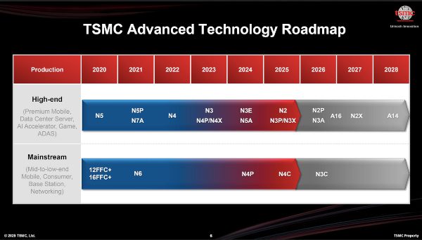 TSMC manufacturing roadmap through A14 in 2028. Source: TSMC.