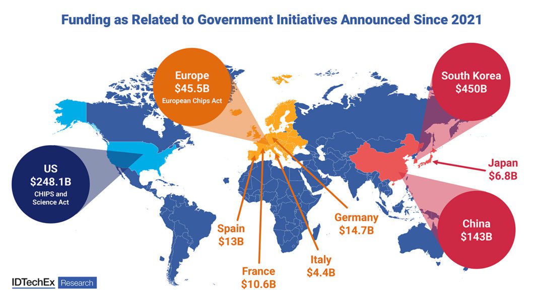 IDTechEx forecasts that the global AI chips market will grow to US$257.6 billion by 2033. How this pie is sliced will largely depend on how effective funding initiatives are. The report breaks down each major national and regional funding initiative related to semiconductor manufacture, giving analysis pertaining to where funding is coming from, how this is to be dispensed, and the relative effectiveness of each governing body’s initiatives. Geopolitical background is given, difficulties and opportunities presented, and each region’s use and expertise with AI clearly detailed. In addition, the major private investments made and announced since 2021 with regard to semiconductor manufacture are surveyed and contextualized within overarching funding initiatives.