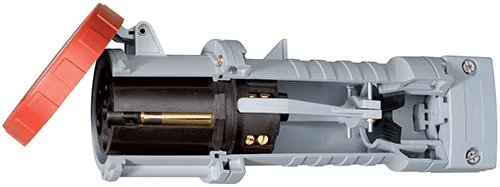 Le connecteur femelle 2CMA166618R1000 d’Amphenol Sine Systems est une prise à cinq contacts qui partage le même courant de 32 A et la même tension nominale de 200 V à 415 V que la fiche 2CMA104446R1000. Avec cette tension nominale, la broche de terre est située à la position 6 heures et la prise est équipée d’un capuchon rouge. Notez que tous les connecteurs de cette série sont conformes aux normes CEI 60309-1, 2 et 4 et sont également approuvés par UL et CSA.