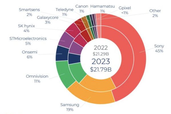 Sony continue de gagner des parts de marché, passant de 42 % en 2022 à 45 % en 2023 (voir Sony augmente sa part de marché dans le CEI alors que Samsung et Omnivision reculent).