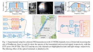 Ce n’est pas la première fois que des données sont transférées à l’aide de la lumière – nous le faisons tous les jours par l’intermédiaire de nos câbles en fibre optique. Mais des techniciens de l’université technique d’Eindhoven ont créé un environnement d’essai dans lequel d’énormes quantités de données sont transférées par une connexion infrarouge à l’air libre. Le banc d’essai qu’ils ont utilisé relie le Flux Building situé sur le campus de la TU/e au campus High Tech, soit une distance de 4,6 kilomètres à vol d’oiseau.