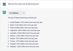Voici un exemple. Commencez par poser une question de « connaissance du monde » : Quels sont les 10 premiers producteurs de bœuf au monde ?