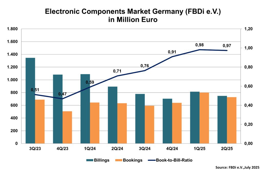 Les semi-conducteurs ont subi les pertes les plus importantes, chutant de 20,3 % par rapport au même trimestre de l’année précédente pour atteindre 444 millions d’euros. La tendance était légèrement plus positive pour les produits passifs et les connecteurs, avec 267 millions d’euros au deuxième trimestre, soit une perte de 8 %. Les ventes de blocs d’alimentation ont atteint 28 millions d’euros, soit une baisse de 7,6 % par rapport au même trimestre de l’année précédente.