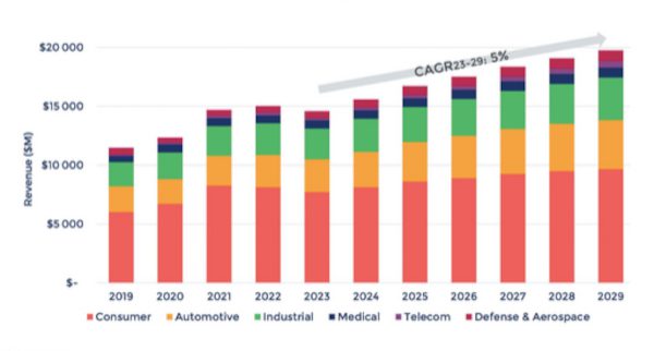 La croissance à long terme devrait être stimulée par l’importance des capteurs en l’électronique grand public, la conduite autonome, l’amélioration du confort dans les voitures, l’industrie 4.0 et l’essor de l’IA.