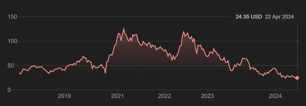 Cette décision intervient alors que l’approvisionnement en plaquettes de SiC et en dispositifs est stratégique pour les constructeurs de voitures électriques et que le passage des wafers de SiC de 150 mm à 200 mm vise à augmenter le volume et à réduire les coûts de production. Le cours de l’action Wolfspeed oscille actuellement autour de 24 dollars, un niveau historiquement bas.